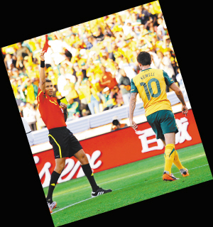 ↑ 澳大利亚队球员科威尔(右)悲情离别。
