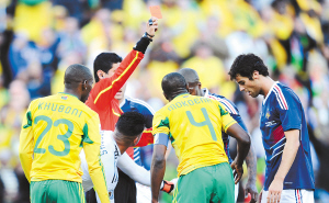 ← 法国队球员古尔库夫(右一)窝囊告别。