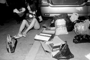 | 外号“好姐”的黄某某(右)及其同伙被人赃俱获。 (海口市公安局供图) |