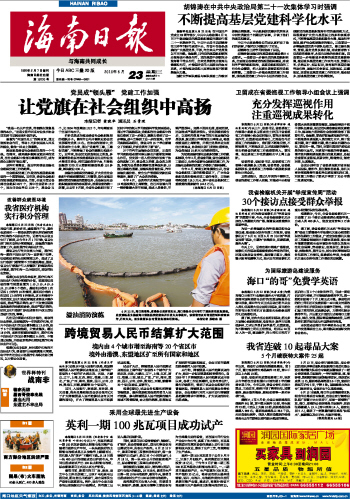 海南日报 头版 001 2010-06-231 2010年06月23日 星期三
