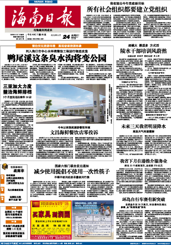 海南日报 头版 001 2010-06-241 2010年06月24日 星期四