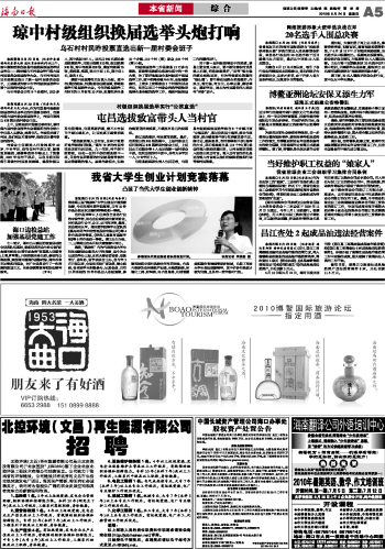 海南日报 本省新闻 005 2010-06-241 2010年06月24日 星期四
