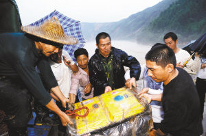 6月24日,福建顺昌县元坑镇干群在协力搬运发电机,送往与受困宝庄村相邻的洋坊村。 6月18日以来,福建顺昌县元坑镇宝庄村受特大暴雨冲袭,通往外界的桥梁全部被冲断,供电、供水、通讯也全部中断。目前,400多名群众仍然被困无法转移,当地政府正全力组织救援。 新华社发