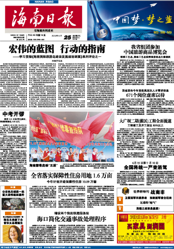 海南日报 头版 001 2010-06-251 2010年06月25日 星期五