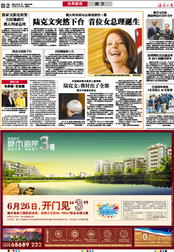 海南日报 世界新闻 010 2010-06-251 2010年06月25日 星期五