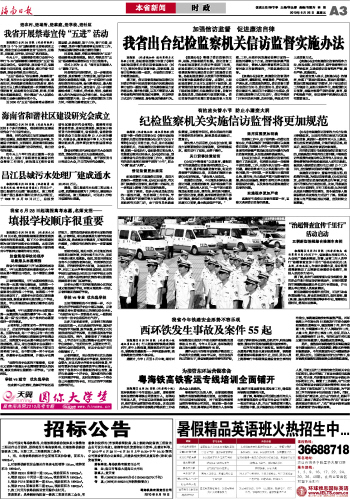 海南日报 本省新闻 003 2010-06-251 2010年06月25日 星期五