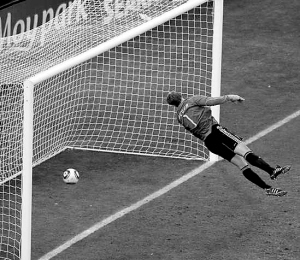 | 这球确实进了。图为兰帕德的射门入网弹地一瞬。小新发 |