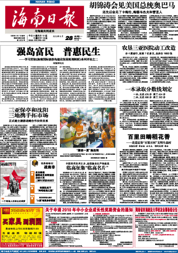 海南日报 头版 001 2010-06-281 2010年06月28日 星期一