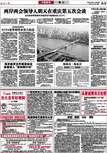 两岸经济合作框架协议签署进入“读秒倒计时”