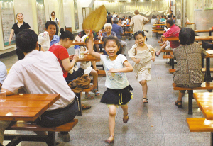 ③7月1日,重庆小朋友在防空洞内嬉戏。当日,重庆最高气温超过36℃,重庆市今年供市民纳凉避暑的102个人防工程全部开放。每年酷暑时节,重庆市均开展“百日纳凉送爽工程”,免费开放人防工程,供市民纳凉。重庆市还为在人防工程中纳凉的市民免费提供桌椅、饮料、书报等。