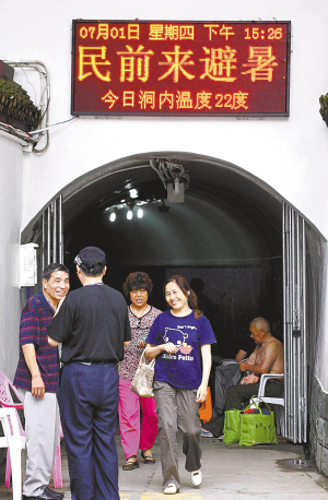 ①7月1日,市民到杭州吴山游艺场防空洞内避暑纳凉。当日,杭州正式免费开放9处防空洞,供市民纳凉避暑。这也是杭州连续第八年在高温时节采取“避暑纳凉,让洞于民”的措施。 新华社发