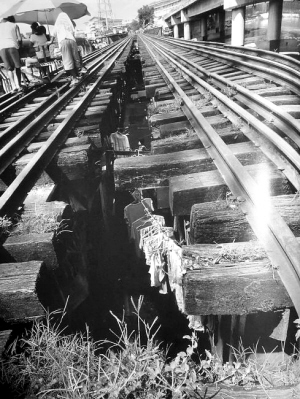 马尼拉,菲律宾首都,20世纪初马尼拉建造了这条当年非常现代化的铁路,岁月的流逝,铁路的北段逐渐坍塌,并已经停运了25年,最终被附近的居民蚕食。南段还在使用,但主要用作近郊运输。约有7万个移民居住在铁路线旁,他们被称作拓荒者,在铁轨的路基上,他们建造了非法的茅舍、房屋和商铺,人们和铁路分享着生活空间。 (来源:新华网)