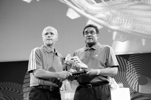 | 7月1日,前葡萄牙队球星尤西比奥与原联邦德国球星盖德·穆勒在南非约翰内斯堡与媒体记者见面并对即将产生的世界杯最佳射手发表了自己的看法。尤西比奥曾获得1966年世界杯最佳射手,盖德·穆勒获得过1970年世界杯最佳射手。图为尤西比奥。