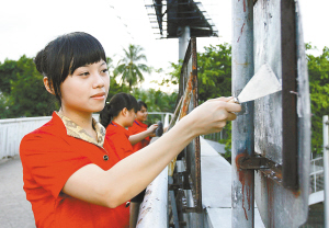 7月1日下午,海南民生百货党支部的党员开展“重温入党誓词、美化城市环境”活动。21名党员在党旗前庄严宣誓。随后,该党支部组织党员和入党积极分子沿着海口海秀东路清理垃圾和天桥“牛皮癣”,以实际行动庆祝党的生日。 本报记者 林萌 摄
