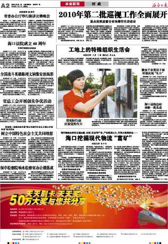 海南日报 本省新闻 002 2010-07-021 2010年07月02日 星期五