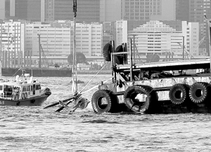 13人全部获救 7月3日,直升机被打捞出水面。 当日中午12时许,从香港飞往澳门的一架直升机在香港上环附近海域紧急降落,包括机组人员在内13人全部安全获救。直升机已从维多利亚港打捞出来。香港民航处表示,将于1个月内就事件提交初步报告。 新华社记者陈铎摄