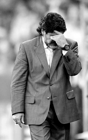 | ↓败局已定,马拉多纳“狂”不起来了。