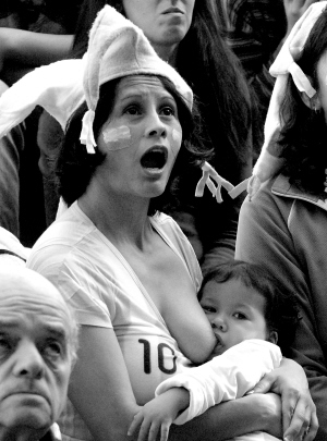 | 在阿根廷首都布宜诺斯艾利斯街头,一名女球迷对阿根廷被淘汰吃惊不已。