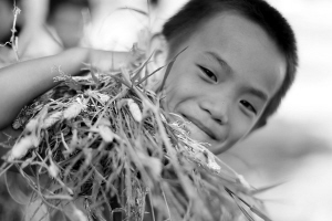 右下: 白沙思源学校,考完试的小学生进行锄草劳动。