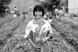 左图: 昌江思源学校,捧着自己种的小青菜,一位学生开心地笑了。