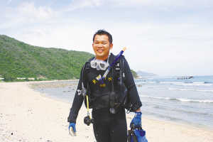 在三亚一家潜水度假村当教练的他,有整整十年的潜水经验,他最大的乐趣是———