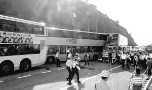 香港大榄隧道三巴士相撞20余人受伤