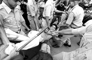 7月5日,警察在印度首都新德里逮捕示威者。为抗议印度近期油气价格上涨,印度主要反对党印度人民党和左派政党5日组织为期一天的全国罢工,印度各大城市的航空和陆路交通因此受到影响,不少市场和企业闭门歇业、学校放假。 新华社/路透