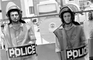 7月6日,在埃及首都开罗市郊的“十月六日城”,警察在命案现场附近警戒。当日,一客车司机向车内的乘客开枪,打死6人、打伤12人。 新华社发(努里摄)