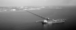 | 在洋浦港原油码头,经常可以见到外籍油轮停靠这里。 本报记者 宋国强 航拍 |