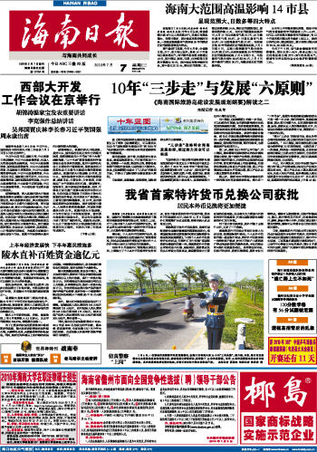 海南日报 头版 001 2010-07-071 2010年07月07日 星期三