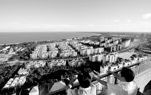 记者从文昌市有关部门了解到,今年上半年,文昌市房地产投资持续增长。其中,1月至5月房地产开发投资额逾15亿元。商品房销售额20亿元。这是7月2日,文昌市民在文昌市清澜镇高隆湾一座高达28层的楼盘顶层鸟瞰“文昌外滩”。 本报记者 宋国强 特约记者 许环峰 摄影报道