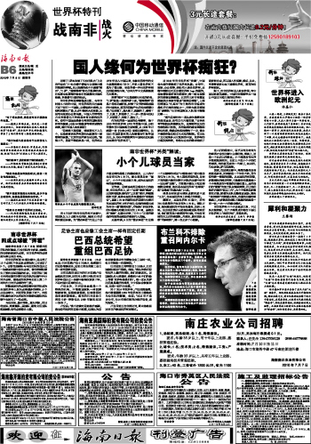 海南日报 战南非战火 014 2010-07-081 2010年07月08日 星期四