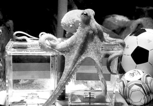 “章鱼帝”的预测手段十分简单。只要在它面前摆上两个印有交战双方国旗的盒子,然后在盒子里放上它爱吃的美食,接下来就等着看这位大仙先打开哪个盒子取食了,而这个盒子上所代表的一方将在比赛中获胜。看似简单,但屡试不爽。章鱼保罗已经成功猜中德国队从小组赛到半决赛的所有比赛结果。