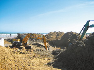 | 伤痕累累的冯家湾海滩。本报记者 田溪 摄 |