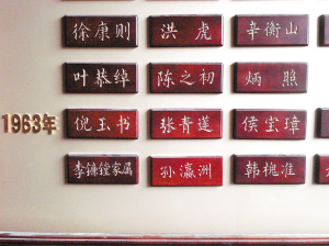 跨入清康熙帝出生的景仁宫正殿,醒目的“景仁榜”三个大字迎面高悬。花梨木镶嵌的赤色巨型屏风上,按捐赠年代镌刻着数百位文物捐赠者姓名:张伯驹、张大千、郑振铎、沈从文、韩槐準……