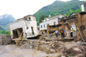 | 7月13日在云南昭通市巧家县小河镇拍摄的受损民房。