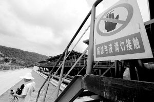 7月13日,紫金矿业铜矿湿法厂一处污水处理装置挂着警示牌。当日,由于污水渗漏事故造成福建汀江流域污染的紫金矿业集团股份有限公司向媒体通报了事件处理情况。紫金矿业集团有限公司总裁罗映南接受记者采访时说,“肇事”的铜矿湿法厂已经无限期停产,全面开展整改,同时将依照事故调查结论承担事故责任和经济赔偿。