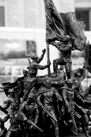 7月12日,位于莫斯科俯首山的反法西斯战争胜利纪念馆荣誉大厅展出雕塑《国会大厦》模型。 为纪念世界反法西斯战争胜利65周年,4月5日至5月25日,俄罗斯举办了主题为“我们在反法西斯战争中在一起”的雕塑竞赛。来自中国、俄罗斯、乌克兰、格鲁吉亚等国的共25件作品参加了竞赛。最终,凝固苏军战士将红旗插上德国国会大厦瞬间的《国会大厦》雕塑获得了网上共44244张选票中的百分之33.67。这组雕塑不久之后将矗立在俯首山上。 新华社发