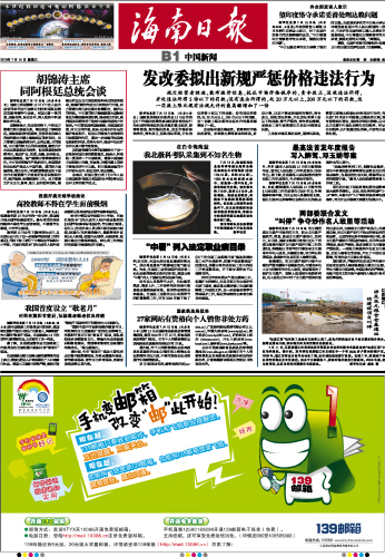 海南日报 中国新闻 009 2010-07-141 2010年07月14日 星期三