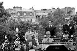 7月14日,法国总统萨科齐(穿西装站立者)在巴黎出席阅兵式。 当天,法国举行阅兵式,庆祝国庆日。 新华社/路透