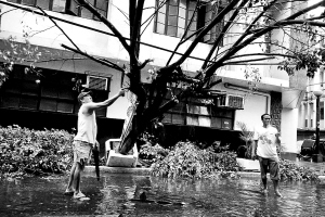 7月14日,在菲律宾首都马尼拉,当地居民清理街道。台风“康森”13日夜间登陆菲律宾沿岸后减弱为热带风暴。台风登陆期间,菲律宾有8人死亡,57人失踪,北部地区大面积停电。 新华社发
