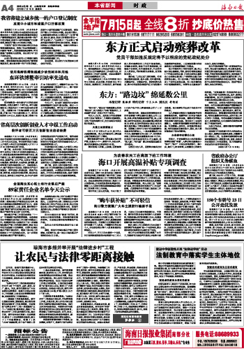 海南日报 本省新闻 004 2010-07-151 2010年07月15日 星期四