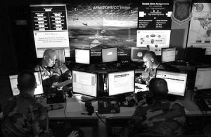 | 资料图片 美国空军网络战司令部内部工作场景 |