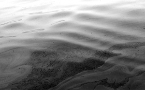 | ←大连新港输油管道爆炸后海面上大片的油污。 新华社发 |