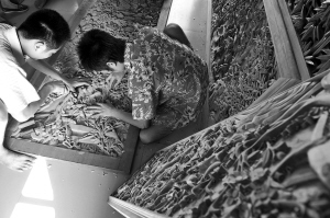 屋内,三位年轻人正拿刻刀细心雕刻着。这三个年轻人正是黄日春的三个儿子,花鸟虫鱼在他们的刻刀下真是活灵活现。
