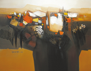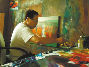 出生于海南,近年常回乡生活与创作的台湾画家陈显栋,进入晚年后,他的作品与创作备受艺术界关注,是一个大器晚成的艺术家。有评论说,陈显栋的作品除了有相对统一的主色调之外,没有具体的物象,呈现在画布上的只有几块大小不同、形状各异的色彩组合,可就是这么看似随意的色彩堆积,竟然使原本浓墨重彩的画面散发出空灵的东方气息,给人无限的遐想空间。