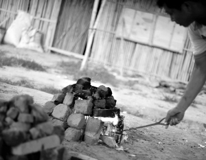 | 临城镇兰堂村的“农家乐”里,已经烧红的土炉。 |