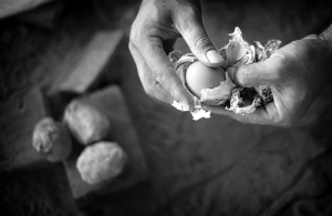 泥块使用的土对垒炉和烹制美食都非常重要,如果泥块过紧就不容易拍碎,同时留的气孔也多,食物就不容易熟;如果泥块过松,垒炉的时候就容易坍塌,一失手前功尽弃。