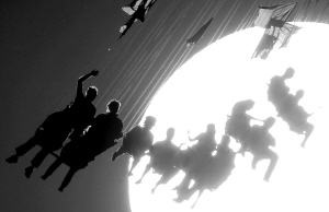 7月19日,在德国西部城市杜塞尔多夫的一个游乐园,体验旋转游艺设施的人们好像被熔化在夕阳中一般。 新华社/法新