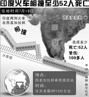 印度铁路部门官员19日说,东部西孟加拉邦当天凌晨发生列车相撞事件,致使60多人死亡,超过100人受伤。随着救援工作展开,死伤数字可能进一步攀升。